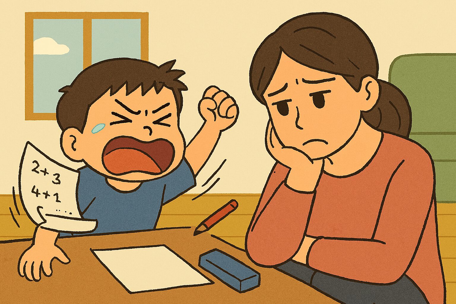 小学生の癇癪が起きる場面として多いのが、宿題や勉強の時間です。「宿題やりなさい」と言った途端に泣き出す、問題が分からないとプリントを破る、消しゴムを投げつける。こうした激しい反応に、親は困惑してしまいます。