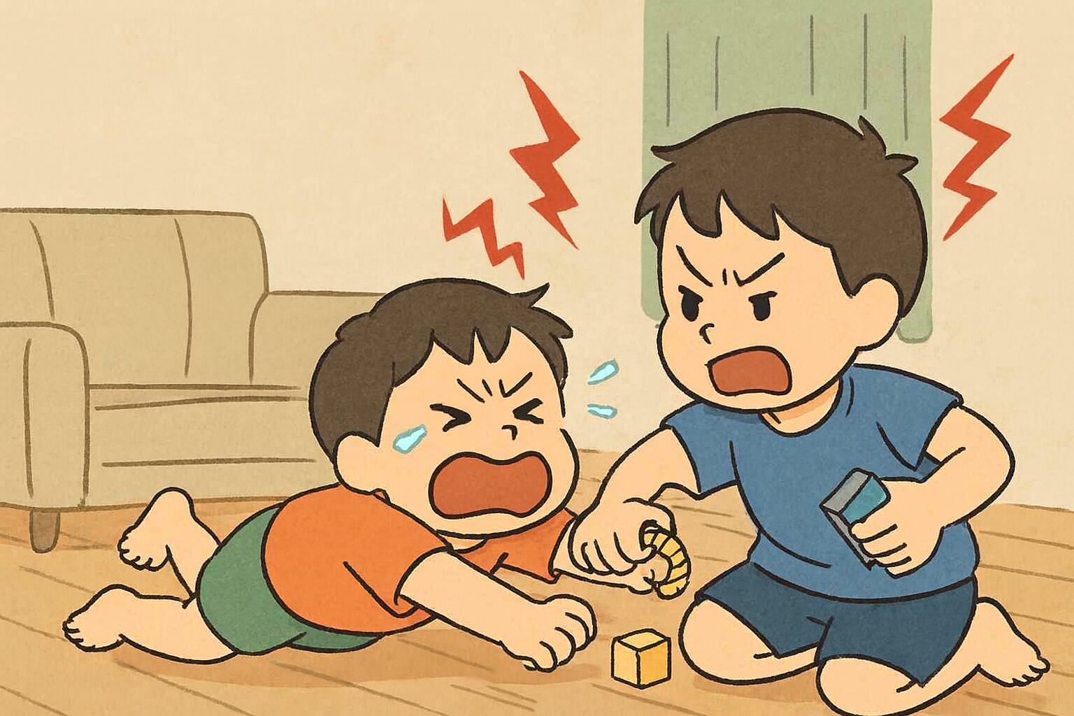 兄弟げんかから癇癪に発展する理由が分からず、途方に暮れている親もいるのではないでしょうか。さっきまで仲良く遊んでいたのに、次の瞬間には取っ組み合いが始まっている。おもちゃの取り合い、順番をめぐる言い争い、些細な言葉のやりとり。そうしたきっかけから、一人、あるいは両方が激しく泣き叫び、床を転がり、物を投げる場合があります。